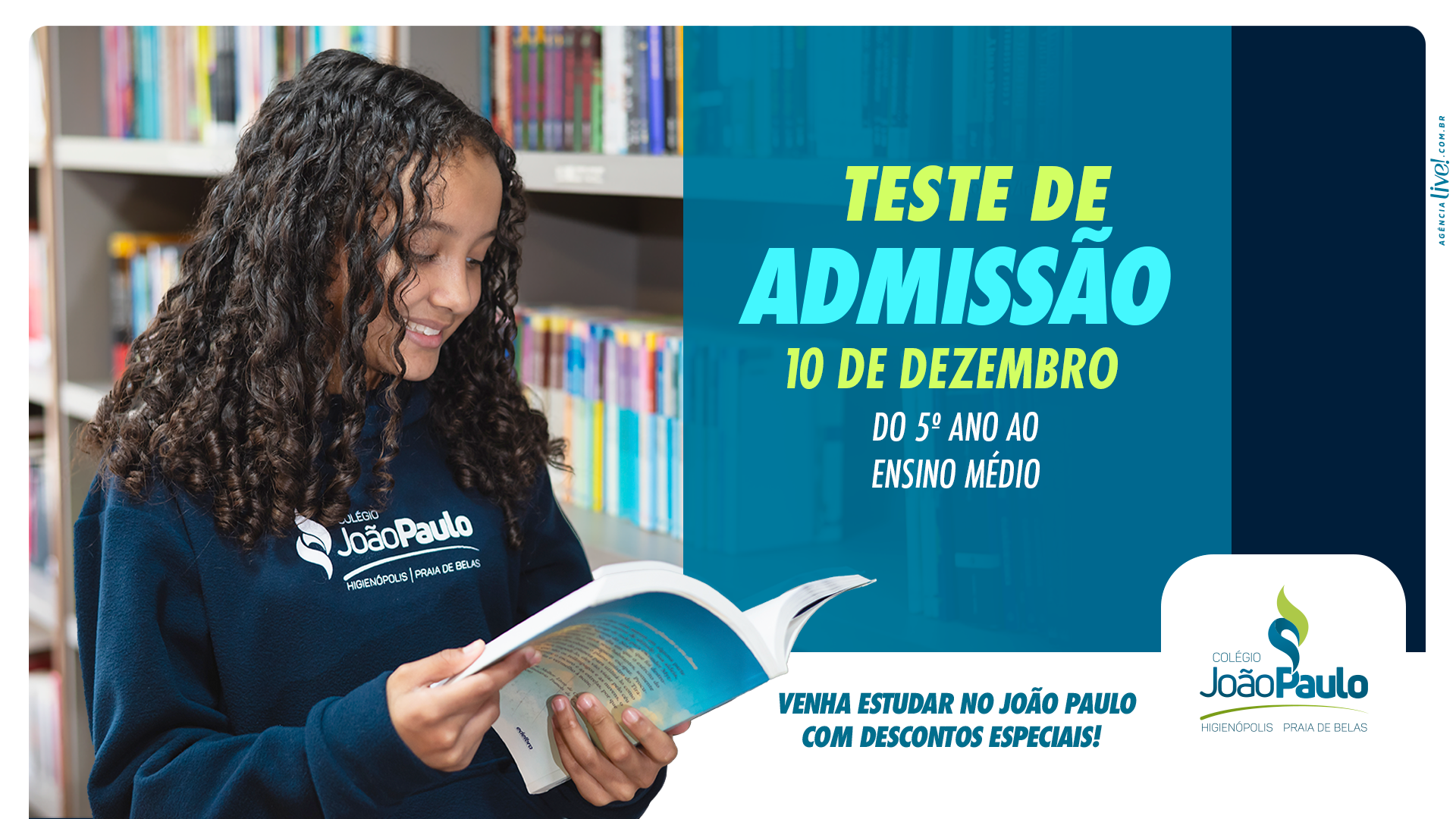 Em sua 3ª edição, a Feira do Livro do Colégio João Paulo Unidade Praia de Belas se destaca como um evento cultural da maior importância para toda a comunidade. A Feira do Livro deste ano traz como temática a multiplicação de histórias: ‘Colégio João Paulo: multiplicando belas histórias’. As histórias fazem parte da nossa […]